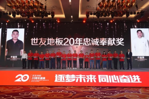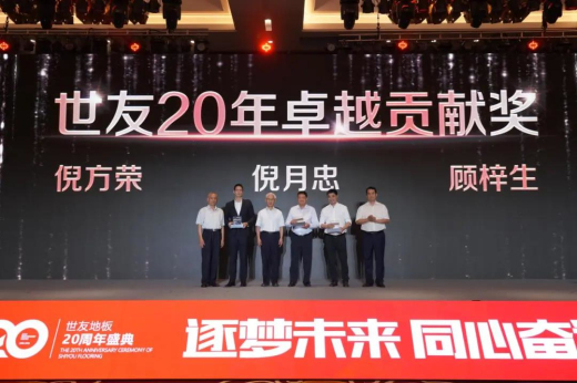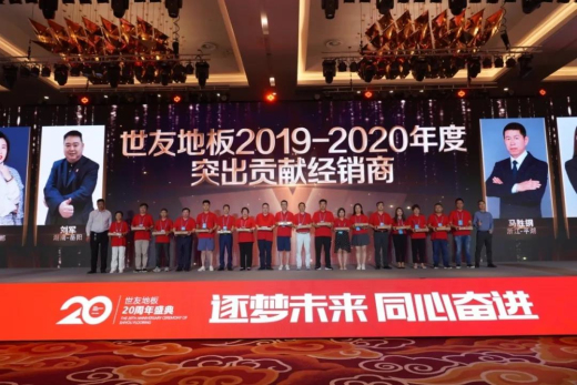 2021年6月17日,以“逐夢未來·同心奮進”為主題的世友地板20周年盛典在浙江湖州龍之夢鉆石酒店盛大舉行。政府領導、行業專家、業內外大咖、全國主流媒體、世友全國各地經銷商們、合作伙伴等2000多人,匯聚太湖風景名勝區,一起回顧二十寒暑的發展歷程與企業榮光,共謀下一個時代宏圖。